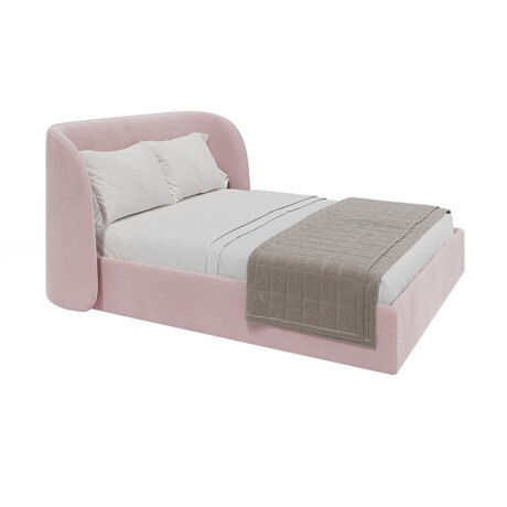 Кровать Classic 160х200: мягкое изголовье и скрытое хранение в нежно-розовом велюре